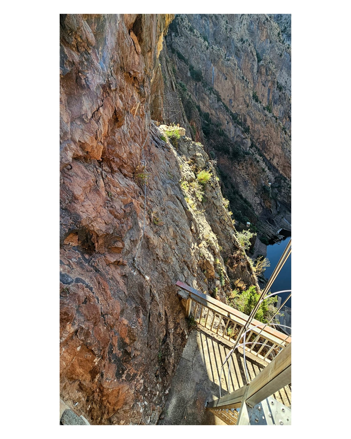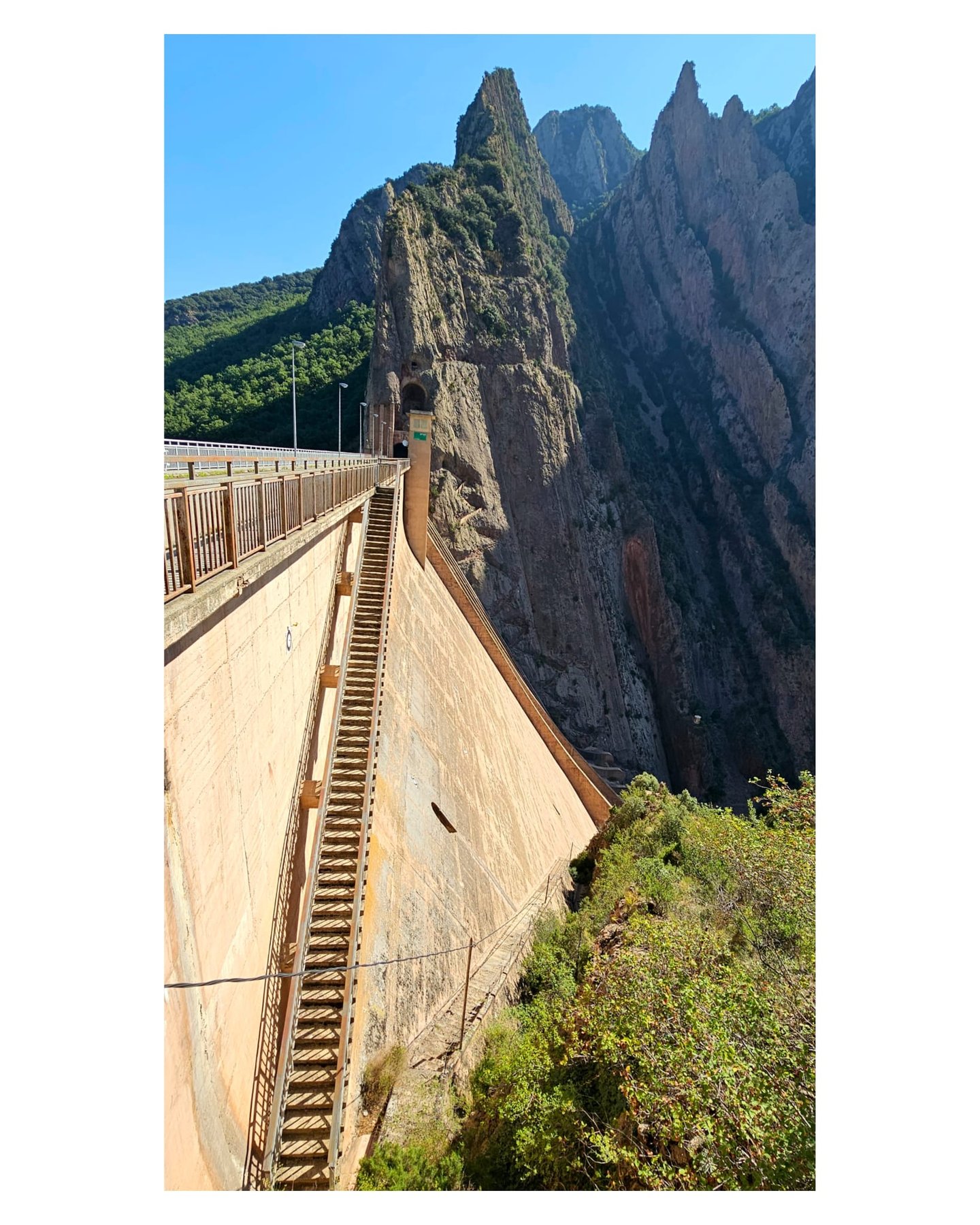 The other was brilliant because we could turn our hike into a loop instead of going back on our route and covering the same ground. So, we crossed this via ferrata to the dam's walkway that ran alongside the entire length of the top of the dam before climbing up the metal ladder, over the padlocked door of the rail and onto the access road.